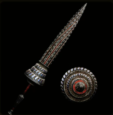 A defensive weapon with a large shield and precise attacks.